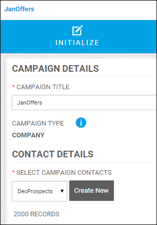 After you name your campaign, you must initialize it by selecting the contacts you want to use for the campaign – the list of the people you are targeting.