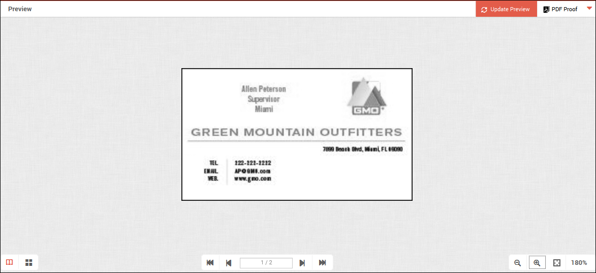 - Click Update Preview. The Product Preview pane opens so you can review your product. If you selected print options, the preview will reflect them.