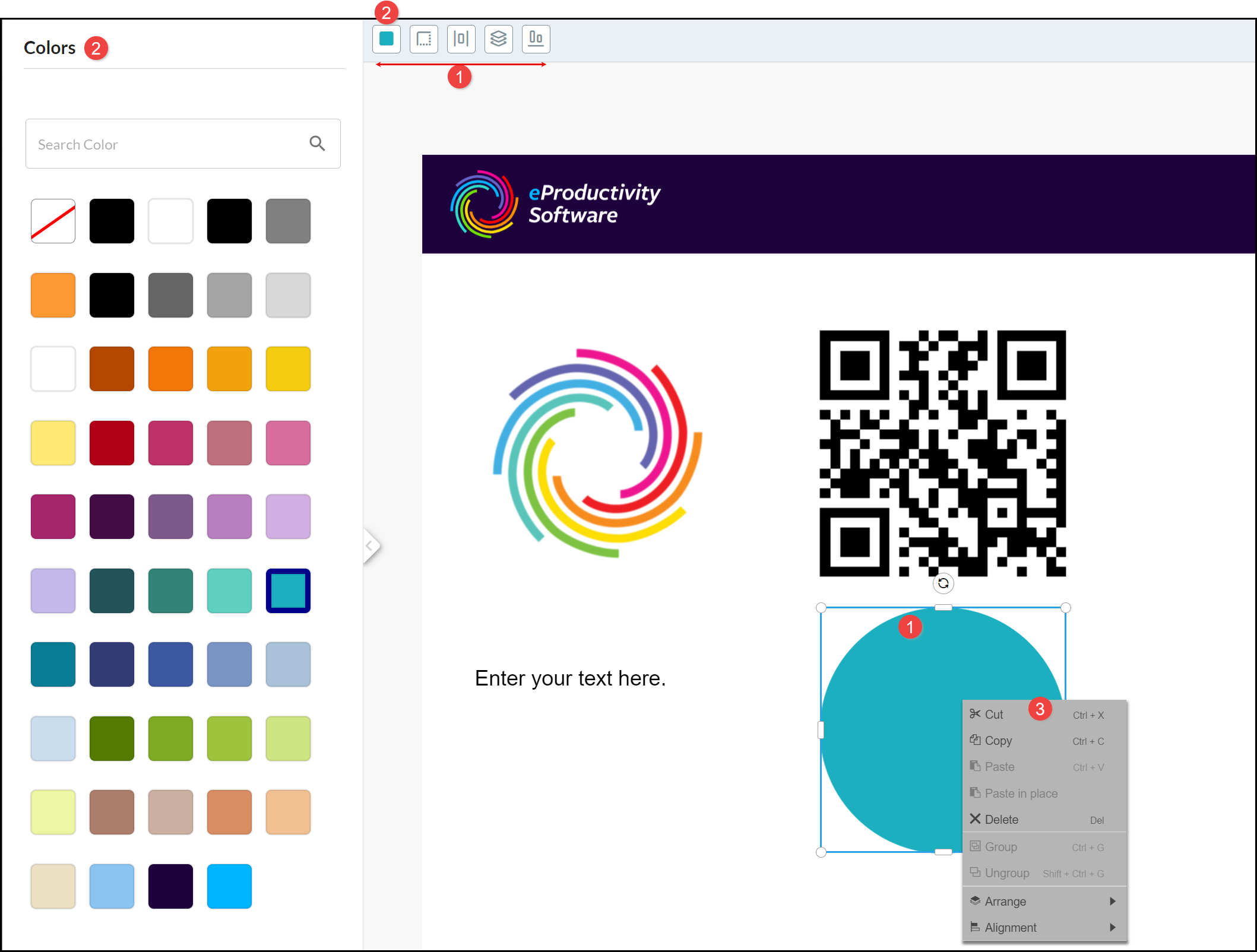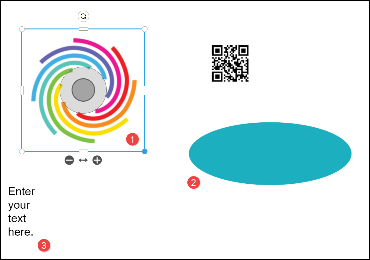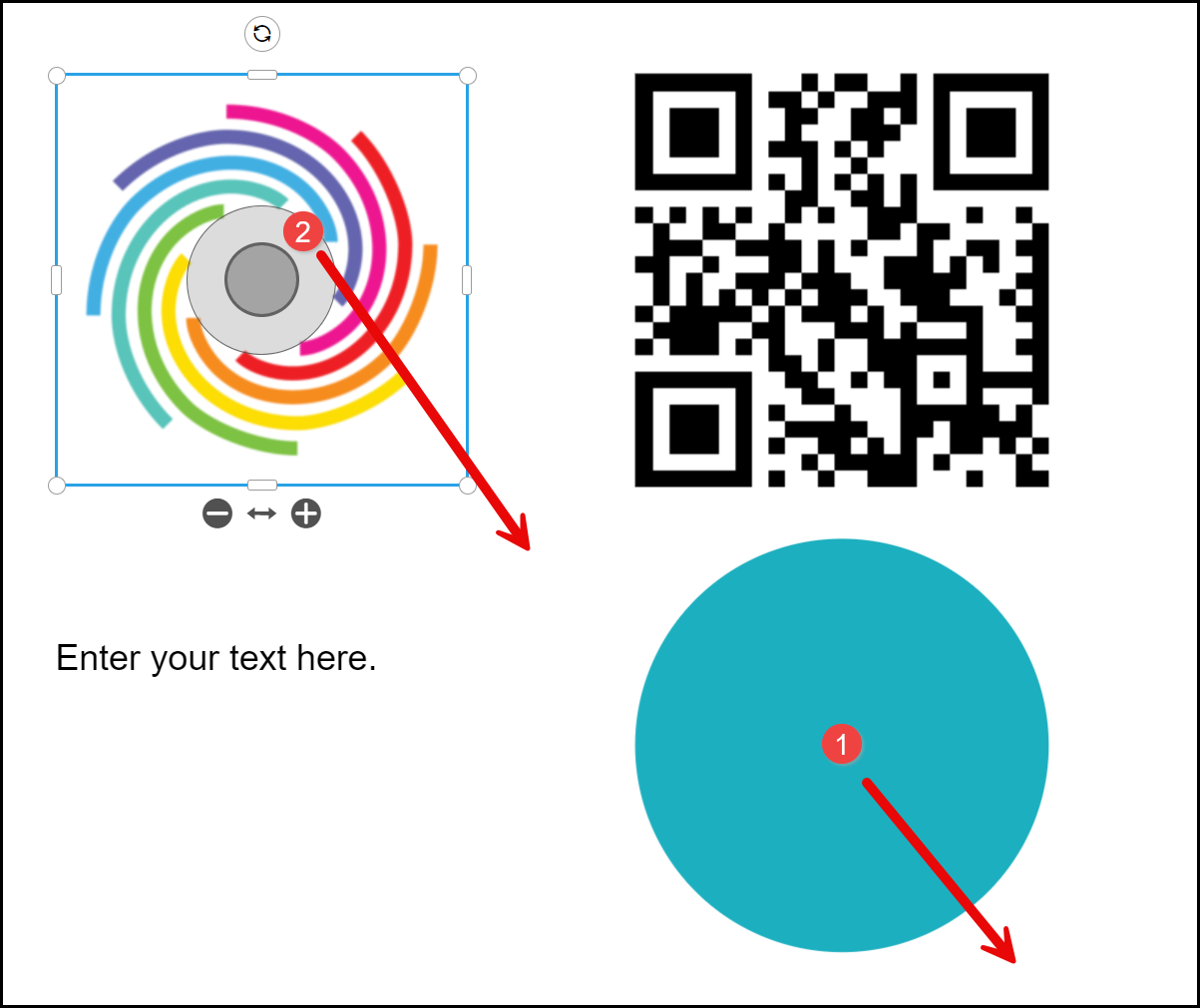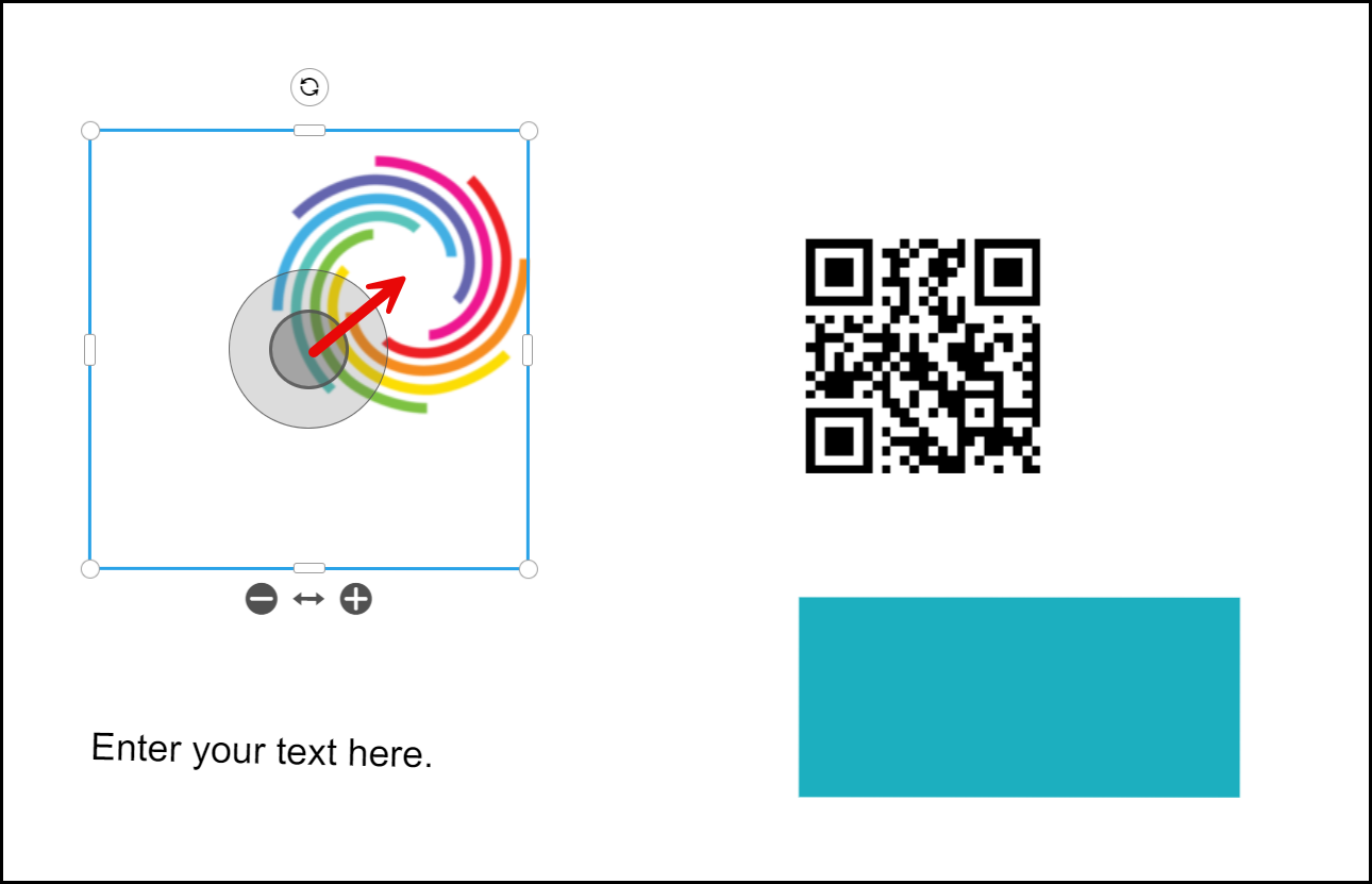- Click and drag the outer circle of an Image or Barcode element and drag it to a new location on the product canvas.