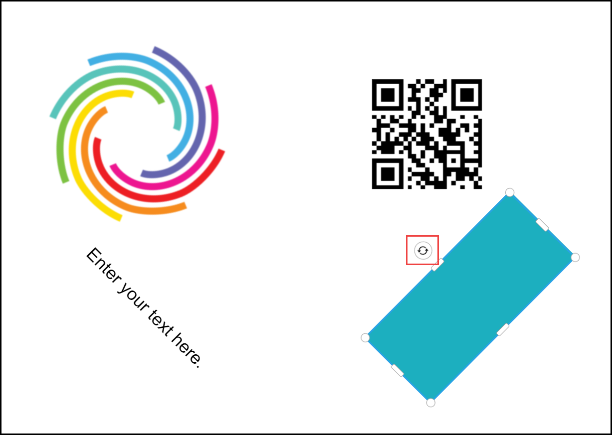 The Rotate option can be applied by selecting any design element, clicking the Rotate icon and moving it clockwise or anticlockwise: