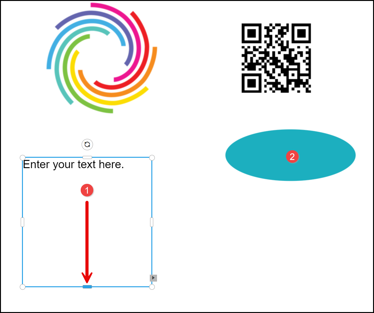 - Click in the center of a Text or Shape element and drag it to a new location on the product canvas.