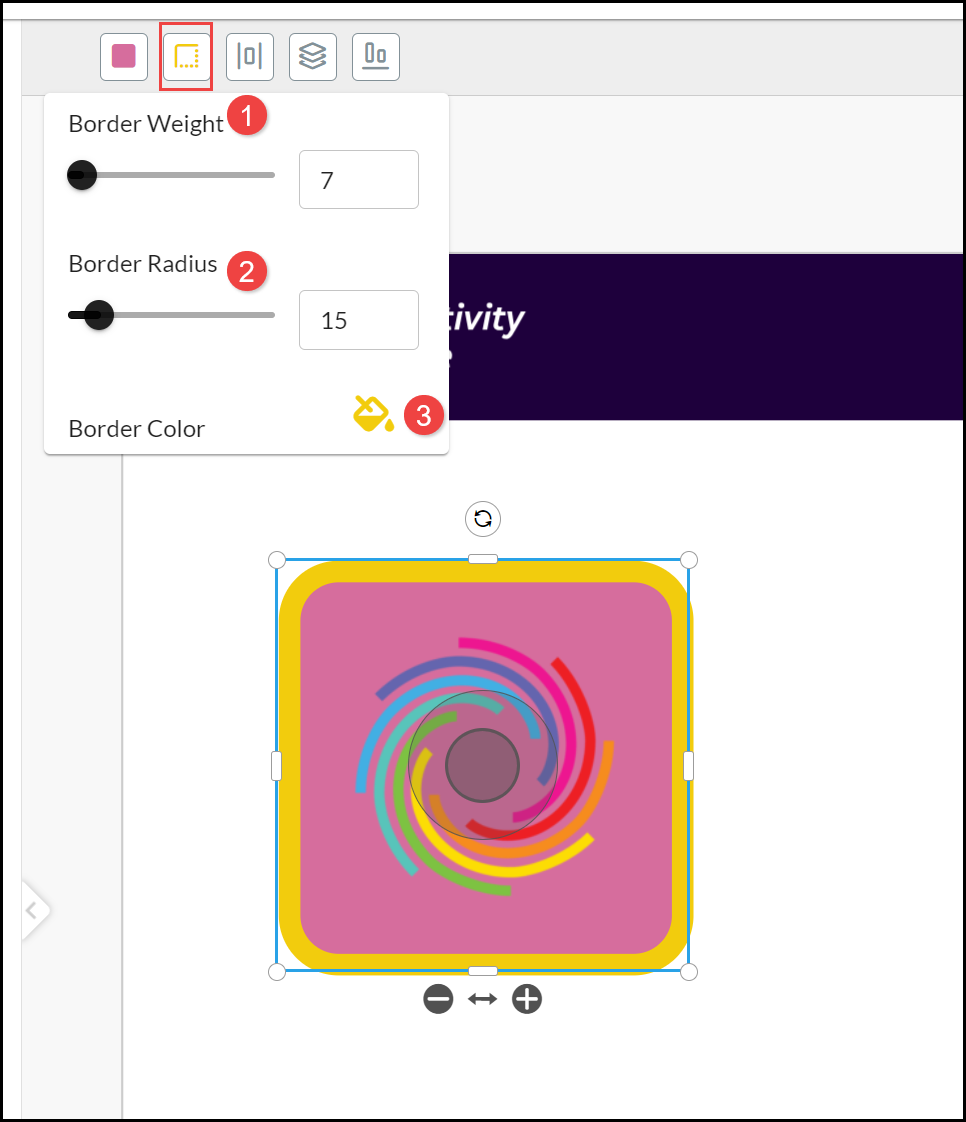 - Change the Border Radius by using the slide or entering a value (in pixels).