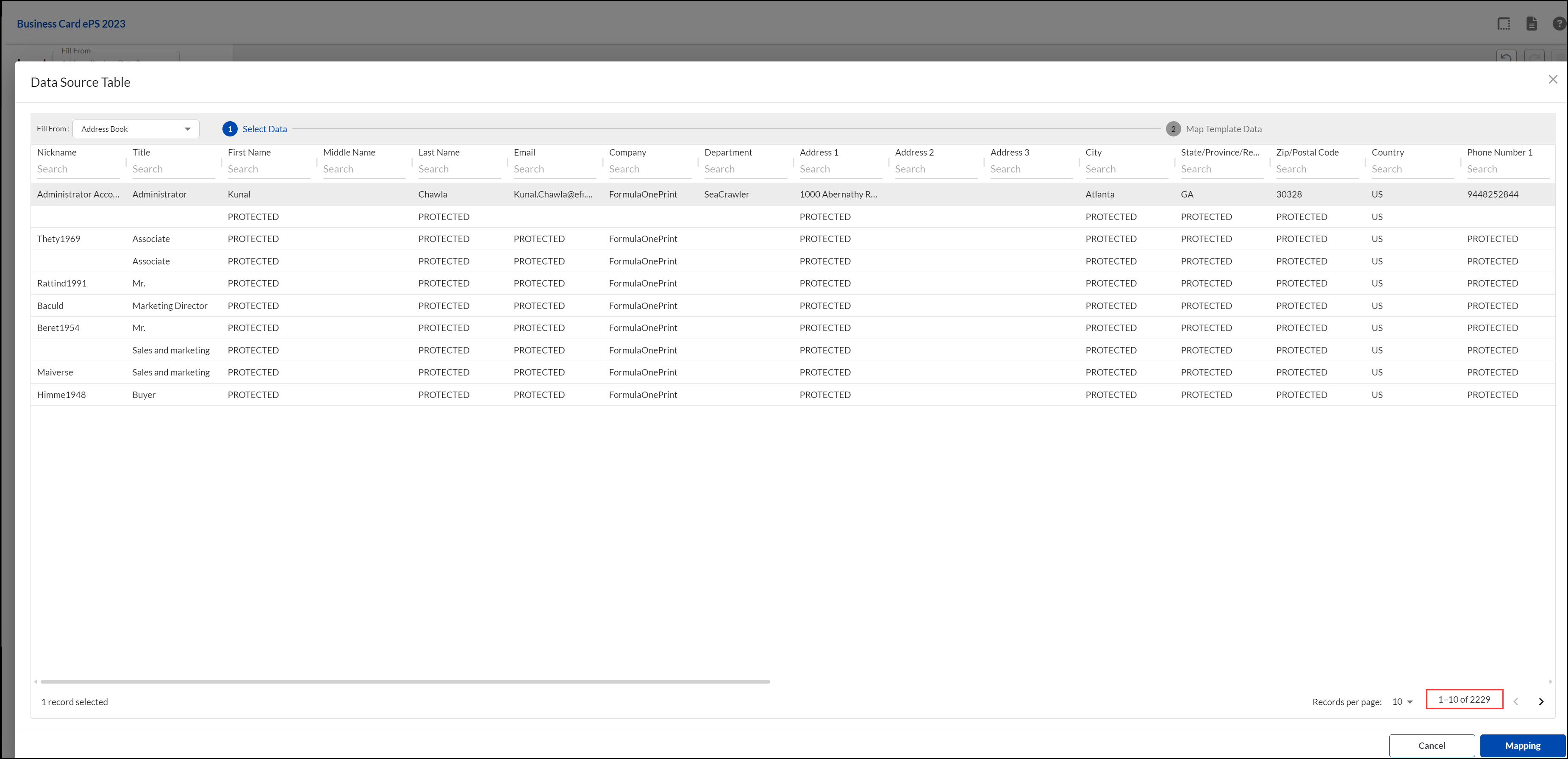 Only the fields with a selected Datasource Name are included on the product. The others remain blank. For larger Jobs you are given the opportunity to Upload a file (and follow the same process to Map your field columns). Contact the company for further information if this is not available on the store front or product screen: