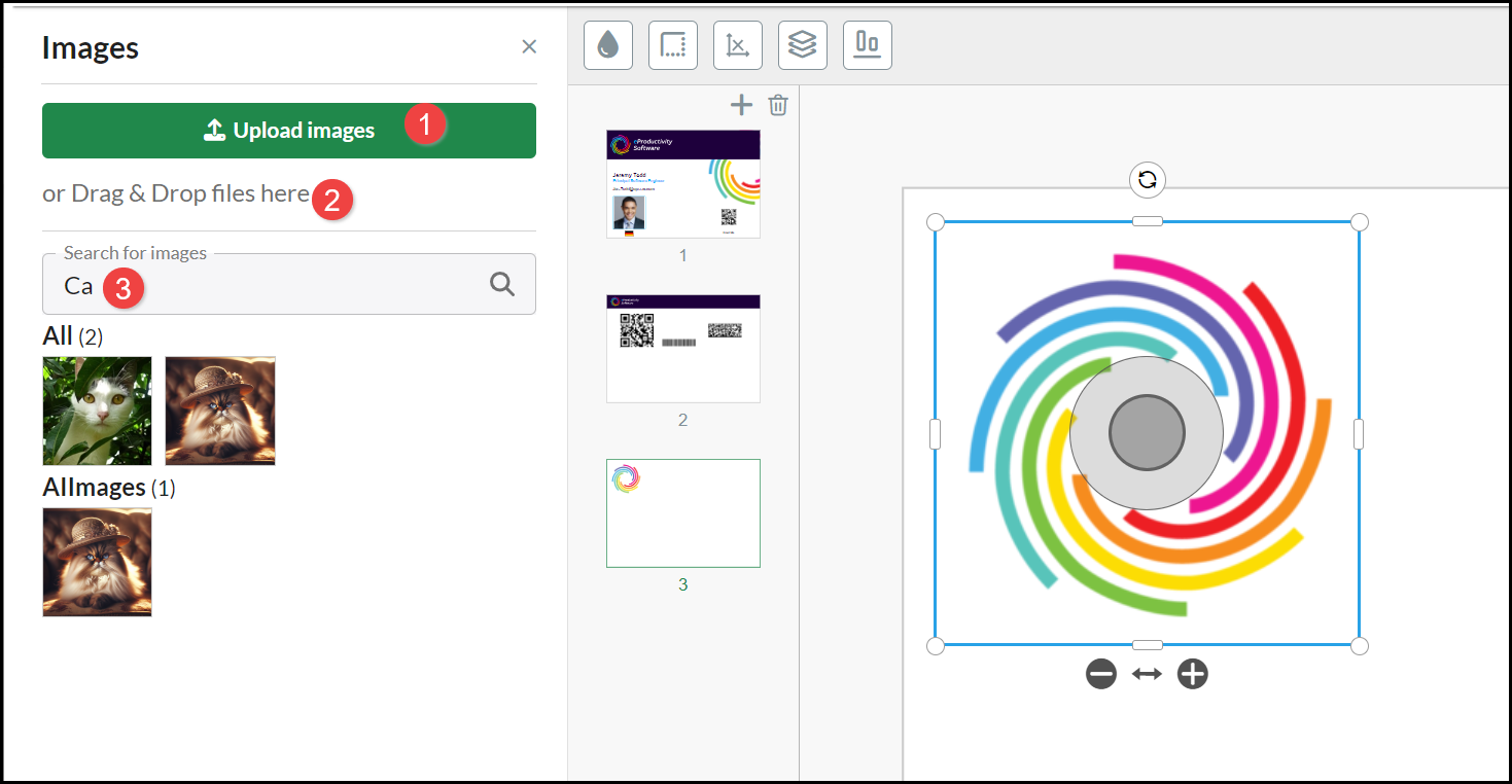 - Upload images from your device. When you select an image it is uploaded into the All Images category of images.