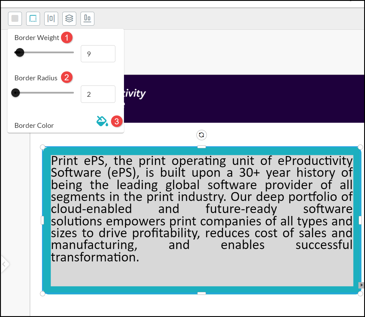 - Change the Border Radius by using the slide or entering a value (in pixels).