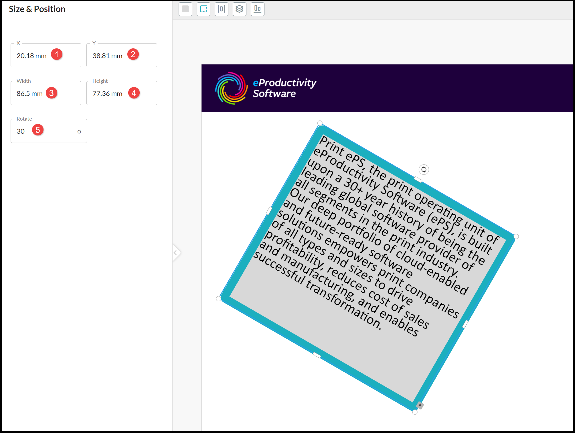 - Rotate angle of the Text Box.