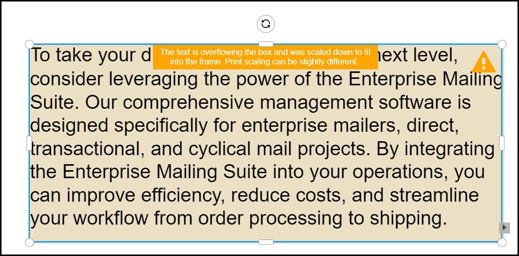 An Warning is displayed if Text overflows the Text Box: